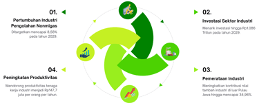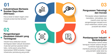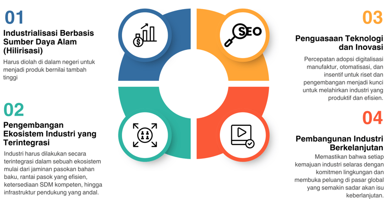 Pertumbuhan Tinggi yang Berkelanjutan didorong oleh delapan strategi turunan yang berfokus pada industrialisasi dan inovasi.