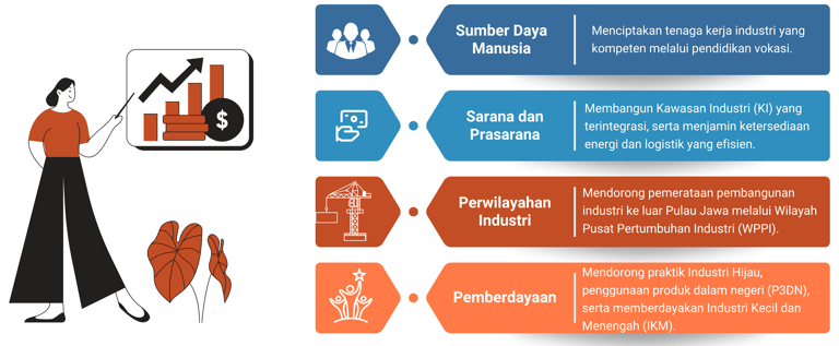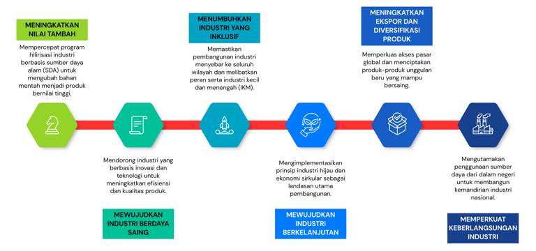 Untuk mencapai visi tersebut, Renstra ini dijalankan melalui enam misi utama yang menjadi fokus kerja Kementerian Perindustrian: